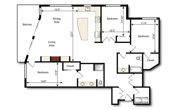 The Edge at City Park has 1, 2 & 3 bedroom units. All units are corner units with over-sized decks.